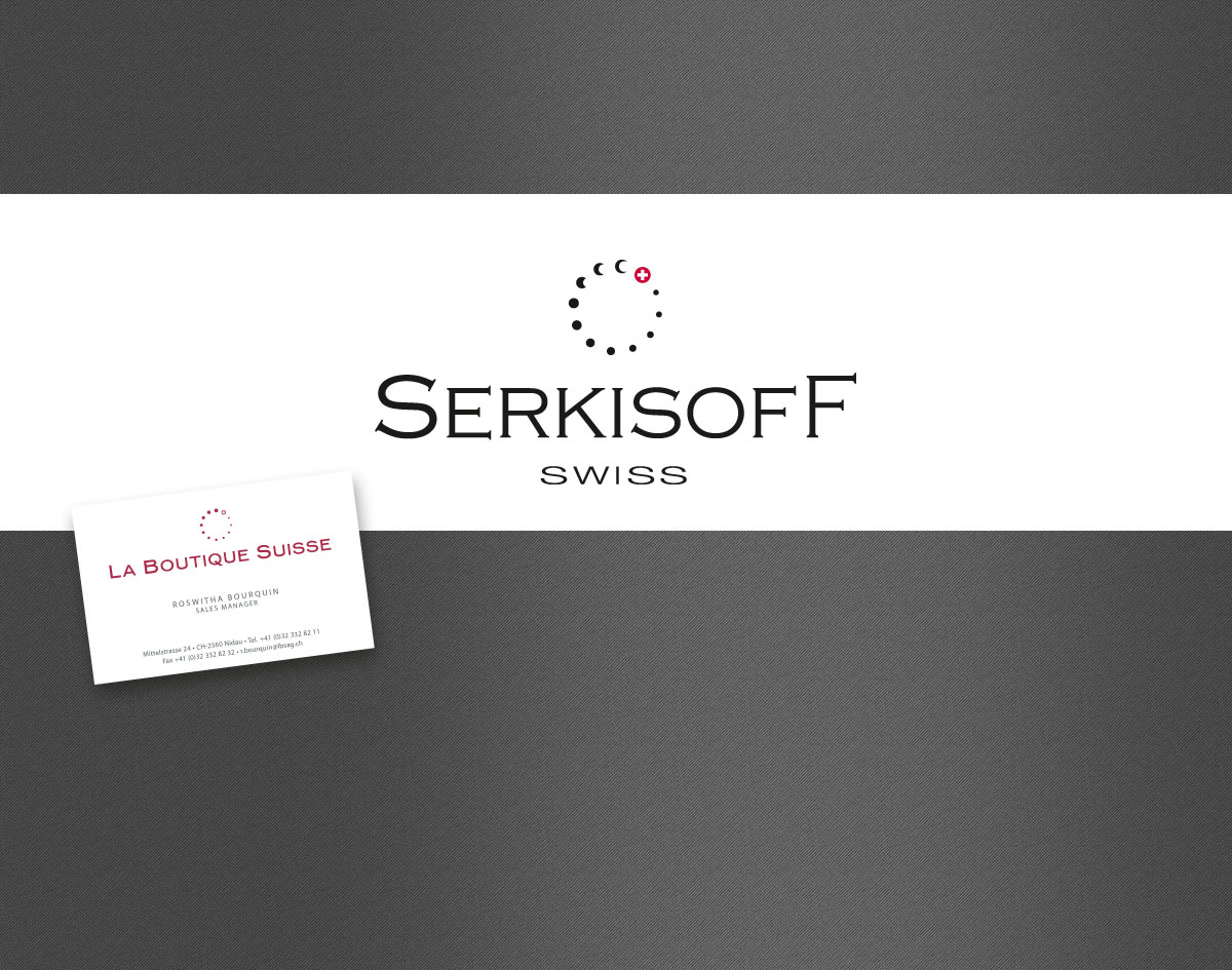 Serkisoff ist eine Uhrenmarke von ‚La Boutique Suisse‘. Für die Briefschaften haben wir ein Serkisoff-Logo in Anlehnung an LBS gestaltet.